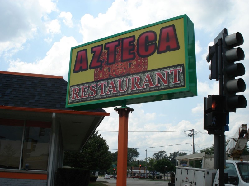 Pylon signs are typically freestanding and internally illuminated with visible support structures or with the support structure enclosed with decorative pole covers. Pylon signs range in height from 10 feet, as often found in neighborhood business areas, to over 100 feet as frequently utilized at major exits along the interstate highways. Pylon signs offer a wide variety of material solutions to convey a business identity to the public, such as plastic faces decorated with paint or vinyl, or flex-faces, a plasticized non-rigid fabric material decorated with paint or vinyl. This is more likely to withstand an impact than a traditional plastic face. We also offer aluminum faces with routed copy and backed with translucent material or channel letters attached to the face.